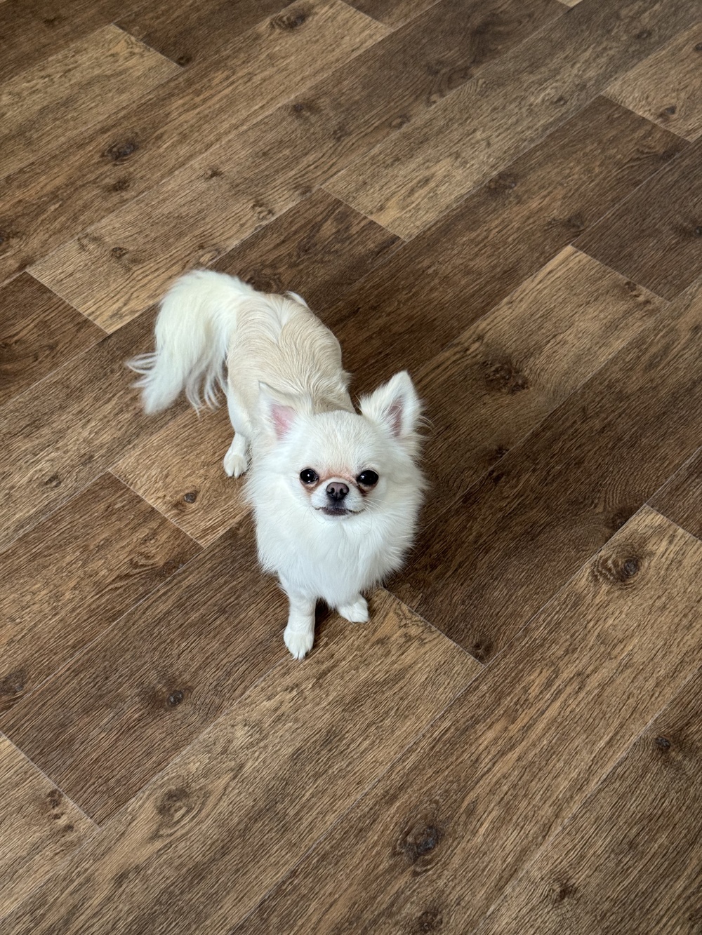 Эта изысканная девочка чихуахуа кремового окраса обладает роскошной, густой длинной шерстью, требующей минимального ухода. Она демонстрирует типичный для породы смелый, но при этом невероятно ласковый нрав. Ее характер идеально сбалансирован: она игрива в меру и спокойна, когда это необходимо.